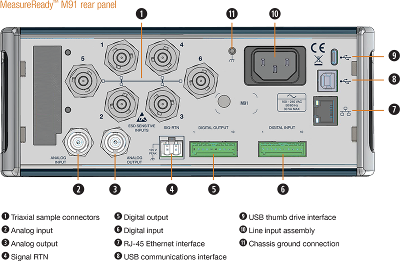The M91 significantly reduces analysis time, in some cases by a factor of 100. Materials with resistances less than 1 MΩ can be analyzed in under a minute. Even extremely high resistances—up to 200 GΩ—can be measured quickly, although analysis time will increase. For resistances over 1 MΩ, the measurement time will depend on the time required for the voltages to stabilize.
